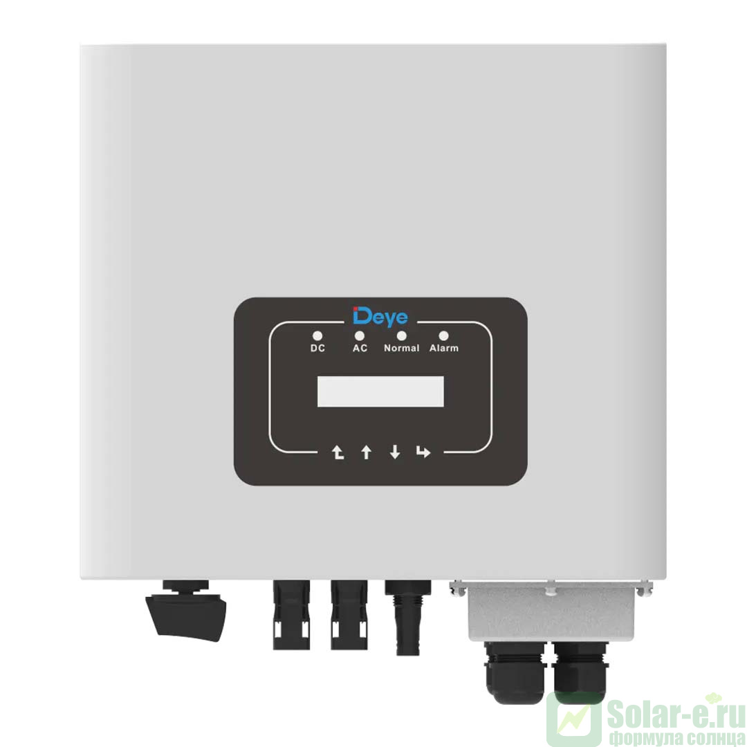 Сетевой солнечный инвертор DEYE SUN-6K-G05P1-EU-AM2 мощностью 6 кВт это современный и высокоэффективный фотоэлектрический сетевой инвертор с MPPT контроллерам. Данный инвертор полностью подходит для построения объекта микрогенерации. Инверторы серии SUN-G05P1-EU-AM2 имеют уникальную встроенную функцию - возможность снижения мощности по команде делимитера (устройства отлеживающего передачу электроэнергии в сеть). Датчики делимитера устанавливаются перед счетчиком, если определяется отдача электроэнергии в сеть, делимитер дает команду инвертору снизить вырабатываемую мощность. Тем самым предотвращается отдача электроэнергии в сеть (очень часто российские счетчики считают отданную электроэнергию как потребленную). Сетевой инвертор используется только совместно с городской сетью, принцип его работы заключается в подмешивании ( добавлении) энергии вырабатываемой солнечными батареями в вашу сеть для обеспечения дополнительной нагрузки или экономии. К примеру, если текущее потребление на вашем объекте 10 кВт*ч, а солнечные батареи вырабатывают 3 кВт*ч, то из городской сети вы возьмете всего 7 кВт*ч, а оставшиеся 3 кВт*ч в вашу сеть вольет сетевой инвертор.