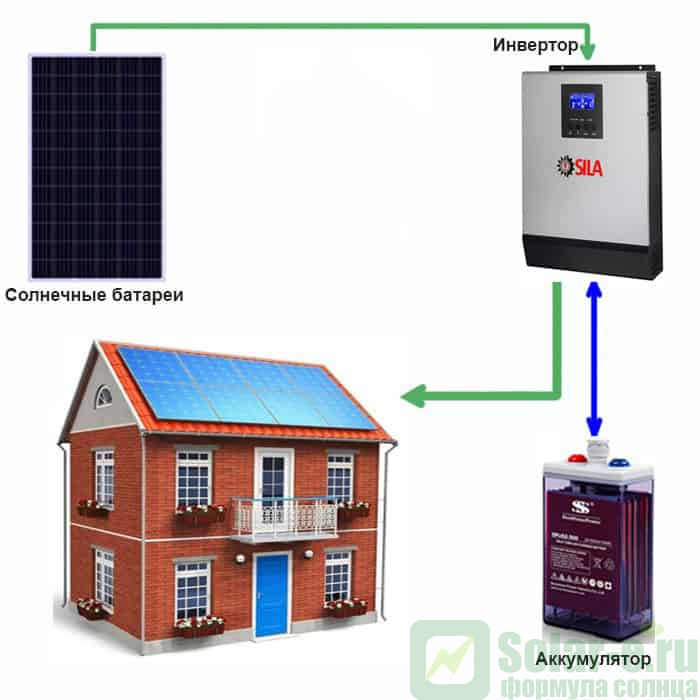 Солнечная электростанция «Дом - 5» подходит для использования как совместно с центральной электросетью ( объект подключен к городской сети ), так и без городской сети ( то есть в условиях полного отсутствия электроэнергии от городской сети ), к примеру небольшие и средние удаленные объекты жилого, хозяйственного или промышленного назначения (дачи, дома, офисы, охотничьи домики, турбазы, бытовки, вахты и т.д.)